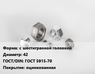 Гайка с шестигранной головкой D=42 ГОСТ 5915-70 оцинкованная