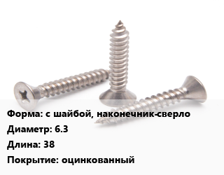Саморез с шайбой, наконечник-сверло D=6.3 L=38 оцинкованный, упаковка 1000 шт цена от 3 911 ₽ / кг, где купить, условия доставки в Воронеже и Воронежской области