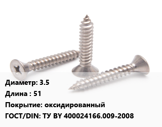 Саморез 3.5 L=51 оксидированный ГОСТ: ТУ BY 400024166.009-2008, упаковка 1000 шт, для металла, РМЗ цена от 455.17 ₽ / кг, где купить, условия доставки в Воронеже и Воронежской области