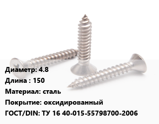 Саморез 4.8 L=150 сталь оксидированный ГОСТ: ТУ 16 40-015-55798700-2006