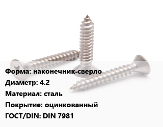 Саморез наконечник-сверло D=4.2 сталь оцинкованный ГОСТ: DIN 7981