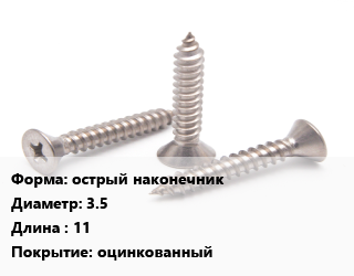 Саморез острый наконечник D=3.5 L=11 оцинкованный