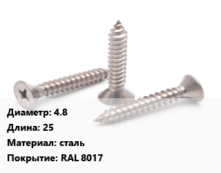 Саморез 4.8 L=25 сталь RAL 8017, шт цена от 3.11 ₽ / кг, где купить, условия доставки в Воронеже и Воронежской области