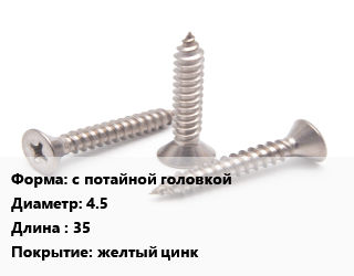 Саморез с потайной головкой D=4.5 L=35 желтый цинк, упаковка 7500 шт цена от 3 154 ₽ / кг, где купить, условия доставки в Воронеже и Воронежской области