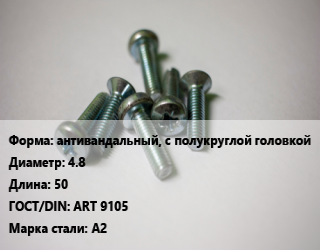 Винт антивандальный, с полукруглой головкой 4.8х50 ART 9105 Сталь: A2, цена за шт, кг цена от 73.29 ₽ / кг, где купить, условия доставки в Воронеже и Воронежской области
