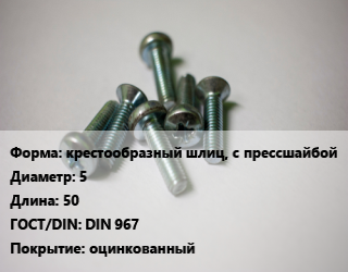 Винт крестообразный шлиц, с прессшайбой 5х50 DIN 967 оцинкованный, кг цена от 152.62 ₽ / кг, где купить, условия доставки в Воронеже и Воронежской области
