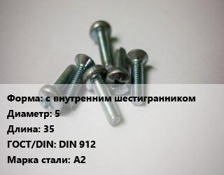 Винт с внутренним шестигранником 5х35 DIN 912 Сталь: A2, цена за шт, кг цена от 18.9 ₽ / кг, где купить, условия доставки в Воронеже и Воронежской области