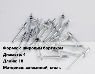 Заклепка с широким бортиком 4х18 алюминий, сталь, шт, вытяжная цена от 6.3 ₽ / шт, где купить, условия доставки в Воронеже и Воронежской области