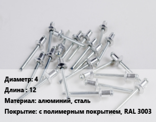 Заклепка 4х12 алюминий, сталь с полимерным покрытием, RAL 3003, шт, вытяжная цена от 2.03 ₽ / шт, где купить, условия доставки в Воронеже и Воронежской области