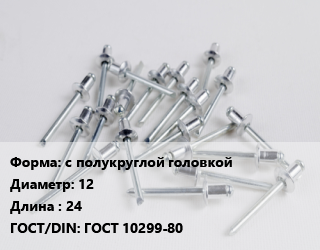 Заклепка с полукруглой головкой 12х24 ГОСТ: ГОСТ 10299-80