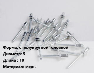 Заклепка с полукруглой головкой 5х10 медь, шт цена от 114.61 ₽ / шт, где купить, условия доставки в Воронеже и Воронежской области