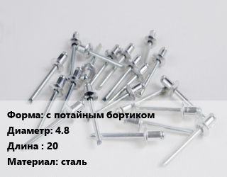 Заклепка с потайным бортиком 4.8х20 сталь, шт, вытяжная, для профнастила цена По запросу где купить, условия доставки в Воронеже и Воронежской области
