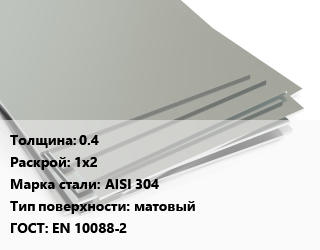 Лист нержавеющий 0.4 1х2 Сталь: AISI 304 Тип:матовый EN 10088-2