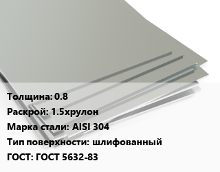 Лист нержавеющий 0.8 1.5хрулон Сталь: AISI 304 Тип:шлифованный ГОСТ 5632-83
