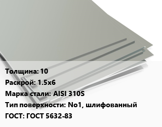 Лист нержавеющий 10 1.5х6 Сталь: AISI 310S Тип:No1, шлифованный ГОСТ 5632-83