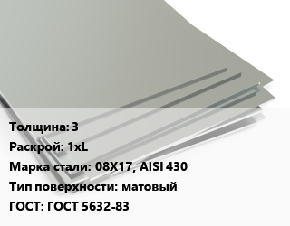 Лист нержавеющий 3 1хL Сталь: 08Х17, AISI 430 Тип:матовый ГОСТ 5632-83