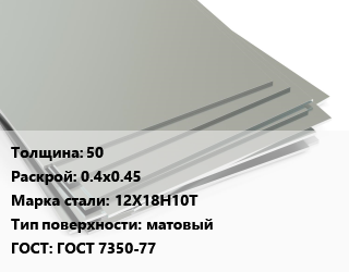 Лист нержавеющий 50 0.4х0.45 Сталь: 12Х18Н10Т Тип:матовый ГОСТ 7350-77